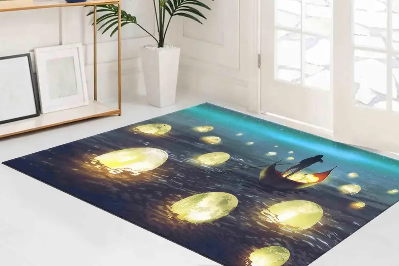 月明かりの夜景プリントラグ - モダンな抽象的な満月デザイン