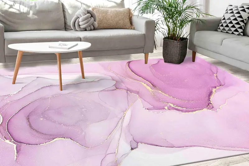 ピンクの大理石とゴールドのプリントラグ - 現代的なデザイン