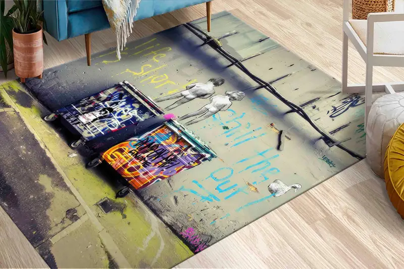 Banksy Life is Short プリントラグ、芸術的なおもらしボーイズデザイン