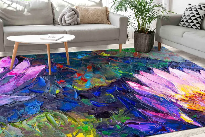 花柄ラグ: ピンク ロータス、モダンな農家の装飾