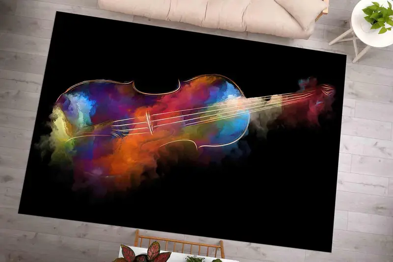 抽象的なヴァイオリン プリント ラグ: 鮮やかでモダンな音楽愛好家へのギフト