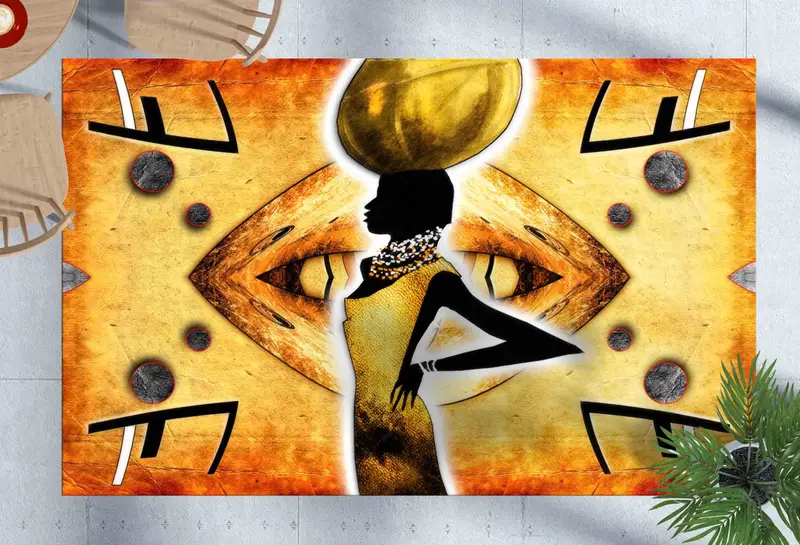 抽象的な黒人女性のデザインを特徴とする文化融合プリント ラグ