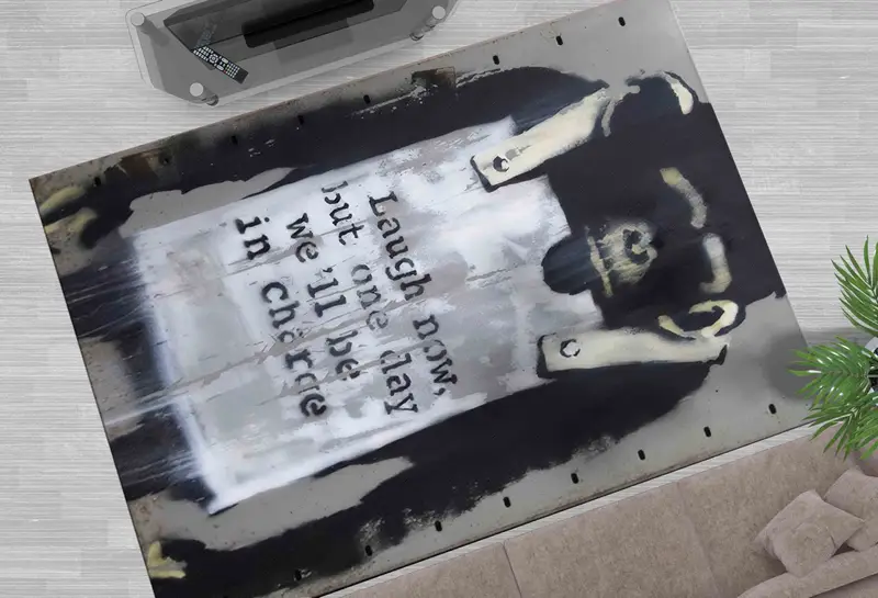 Laugh Now モンキープリントラグ、バンクシー風のモダンなホームアクセント
