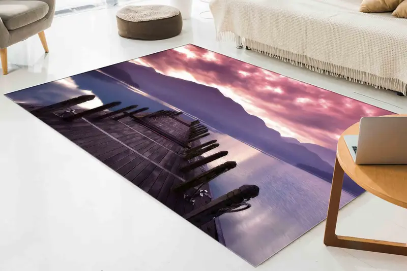 ドックビュー プリント ラグ: ピンクの雲と海の風景