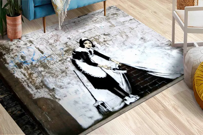 メイド スイープ バンクシー ラグ、女性の落書きが...
