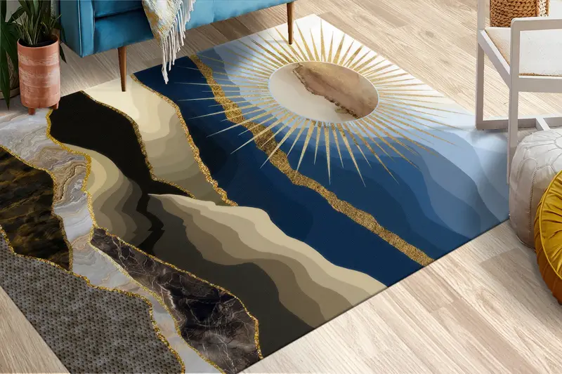 ゴールドサンキラキラマウンテン抽象風景プリントラグ