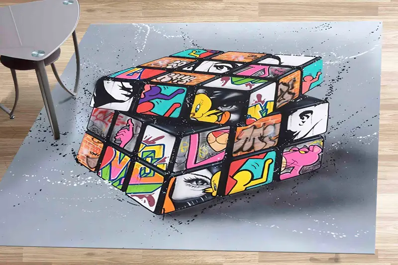 カラフルな落書きプリントラグ: ゲームルーム用のモダンアート