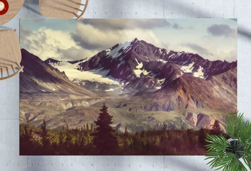 Mountain Peak 風景プリント ラグ - 自然をイメージした冬の風景