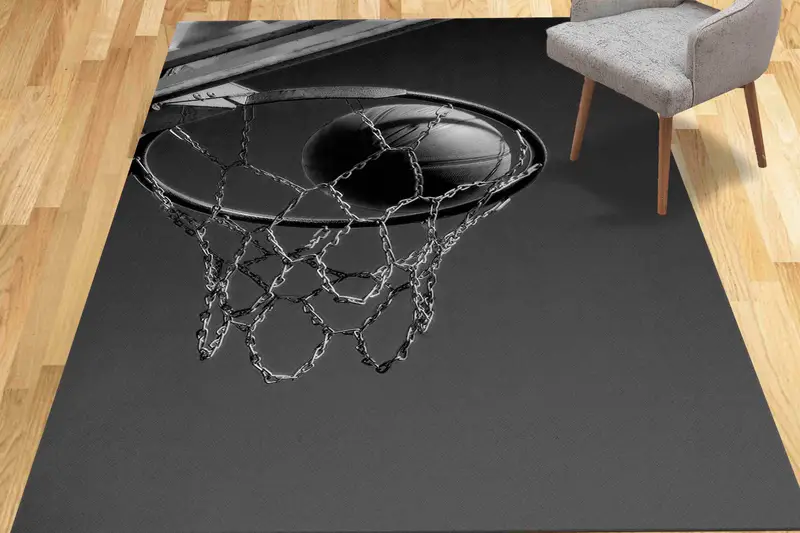 バスケットボール コート プリント ミックス ラグ - 鮮やかなスポーツ デザイン