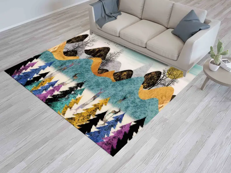 鹿の山の風景プリントラグ: 抽象的な森の風景デザイン