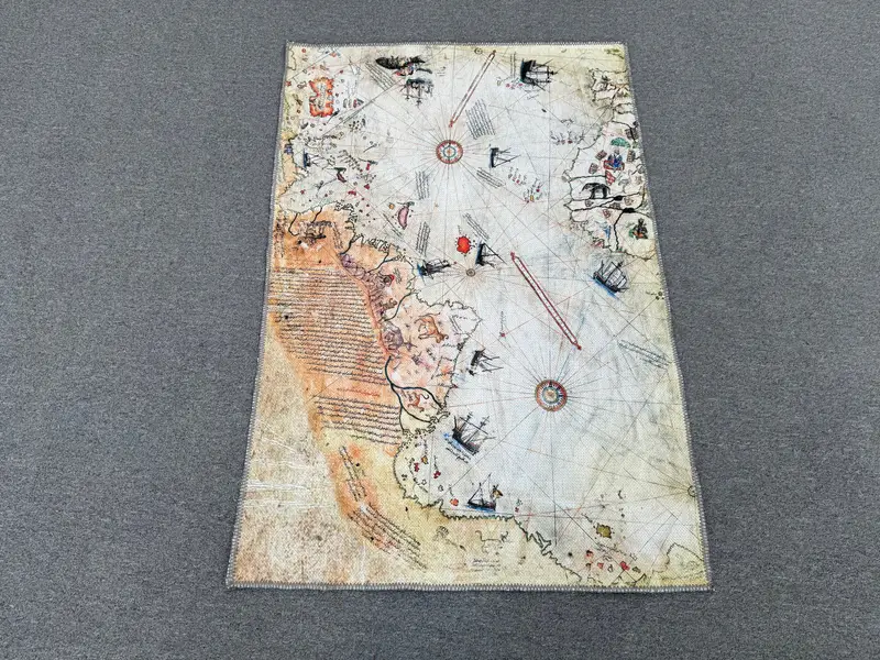 Piri Reis オスマン帝国地図プリントラグ、トレンディなミックスデザイン