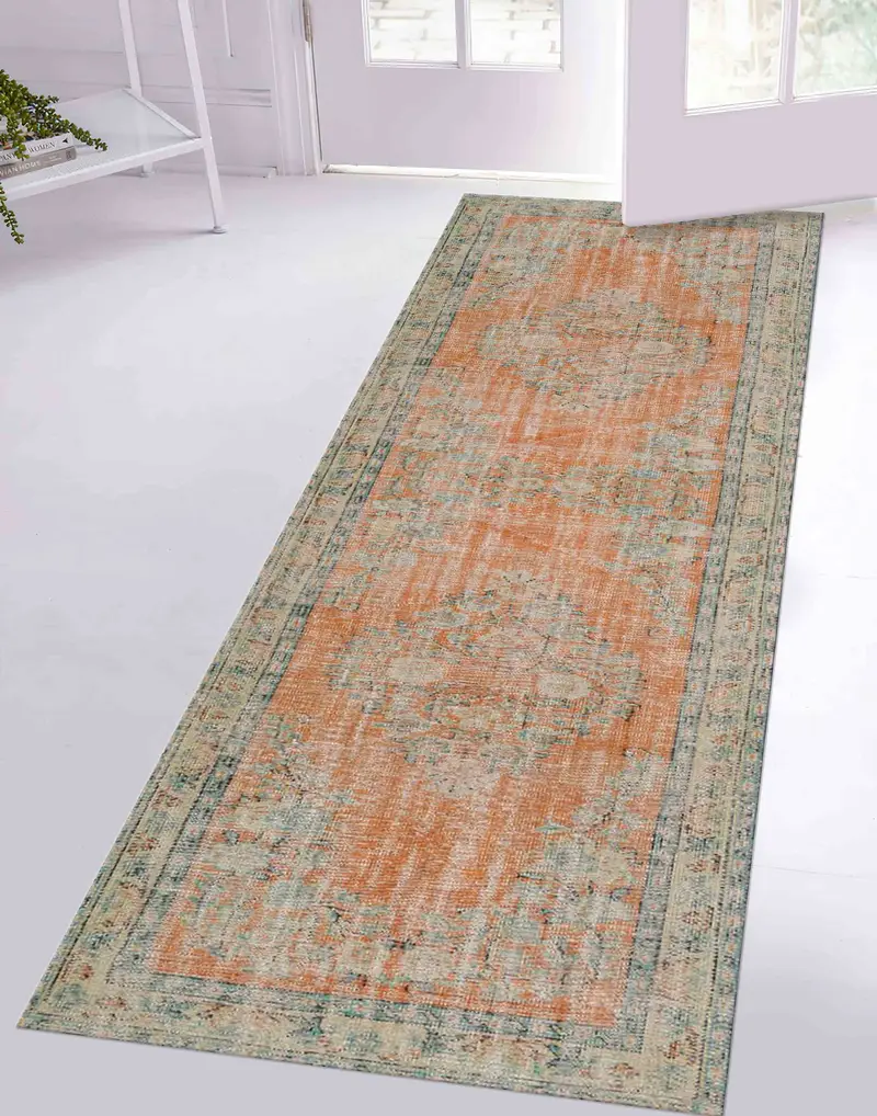 オレンジメダリオンプリントラグ:花柄のヴィンテージデザイン