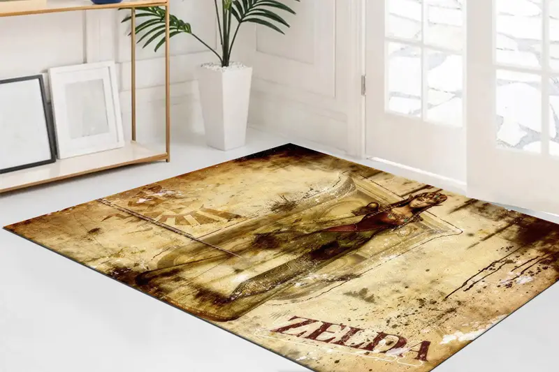 茶色のゼルダをテーマにしたモダンなプリントラグ、ゲ...