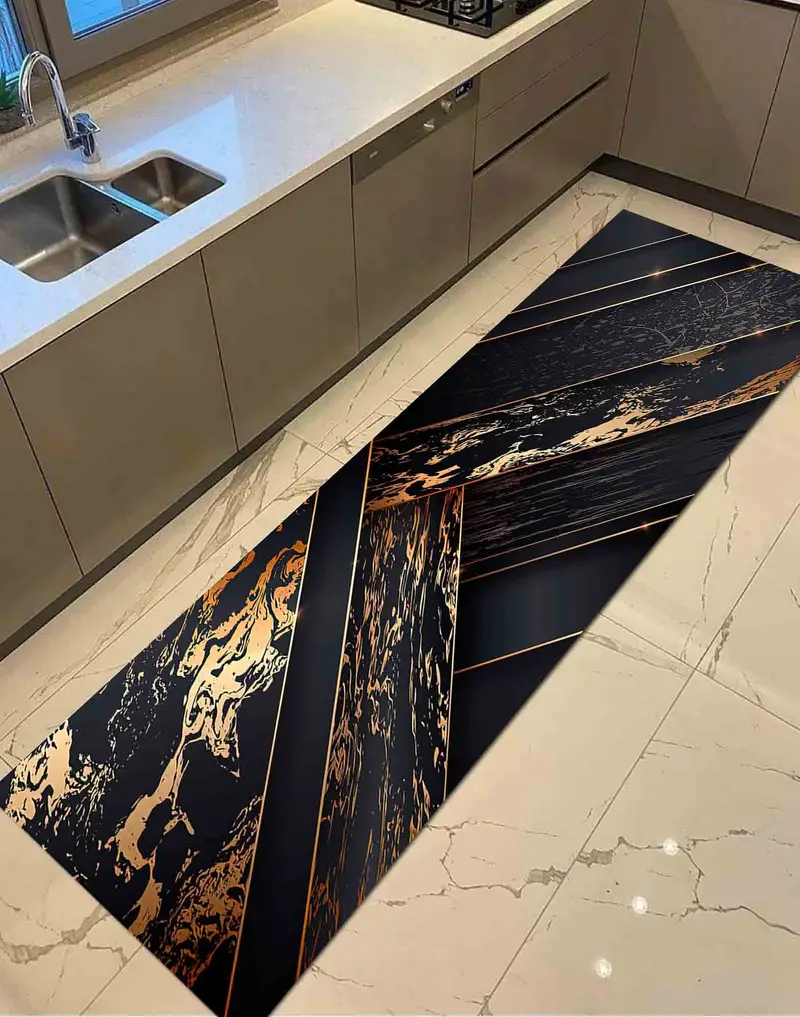 ブラック & ゴールドのモダンな抽象パターン プリント ラグ