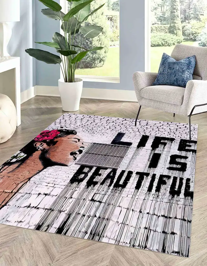 ライフ イズ ビューティフル バンクシー ウーマン グラフィティ プリント ラグ