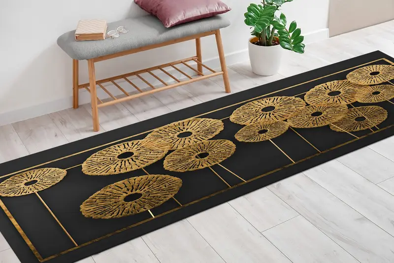 ブラックとゴールドのモダンなプリントラグ:トレンディな3D効果、現代的なデザイン