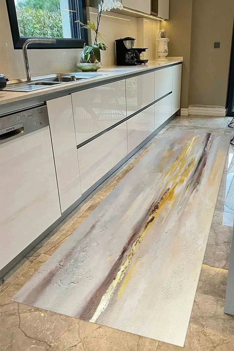 グレーとゴールドのきらめくプリントラグ - コンテンポラリーモダンデザイン