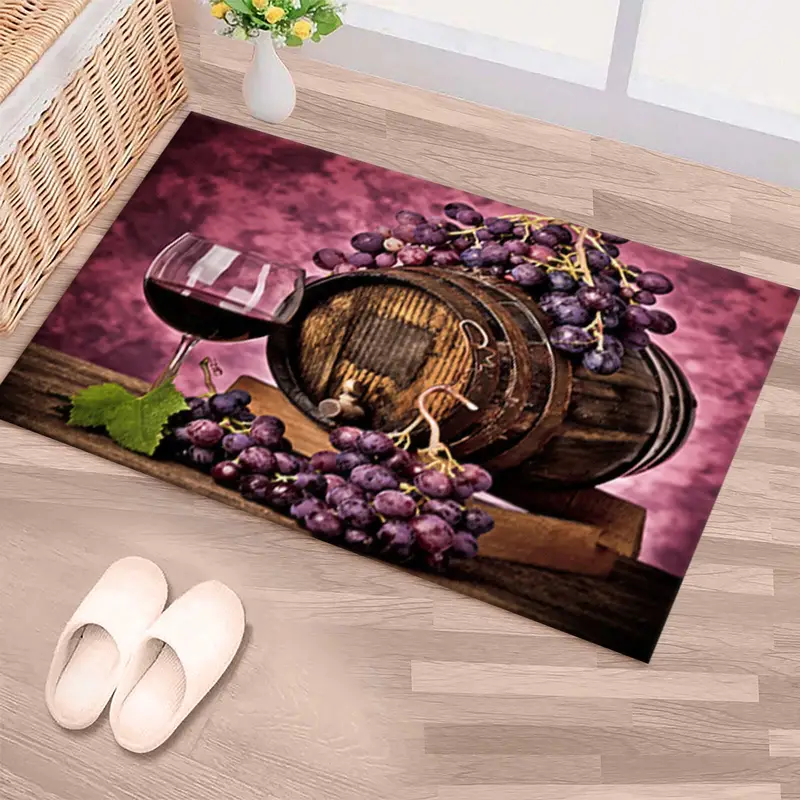グレープパープルワイングラスプリントモダンラグキッチン用