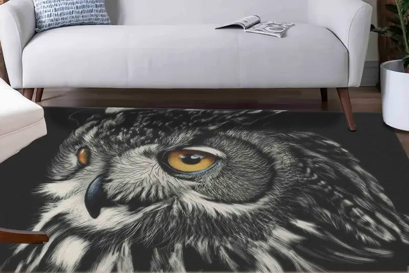 フクロウ柄ラグ - ロフトやオフィス向けのモダンな動物デザイン