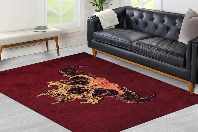バーガンディ悪魔のようなモダンなプリントラグ、悪魔のようなゴシックデザイン