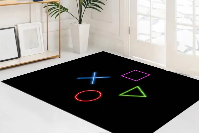 ネオンパターンプリントラグ:トレンディなブラックとネオンのモダンなデザイン