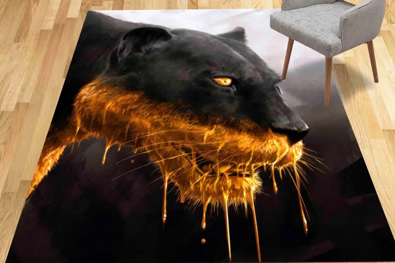 ブラックパンサー プリント ラグ - モダンな農家の動物の装飾