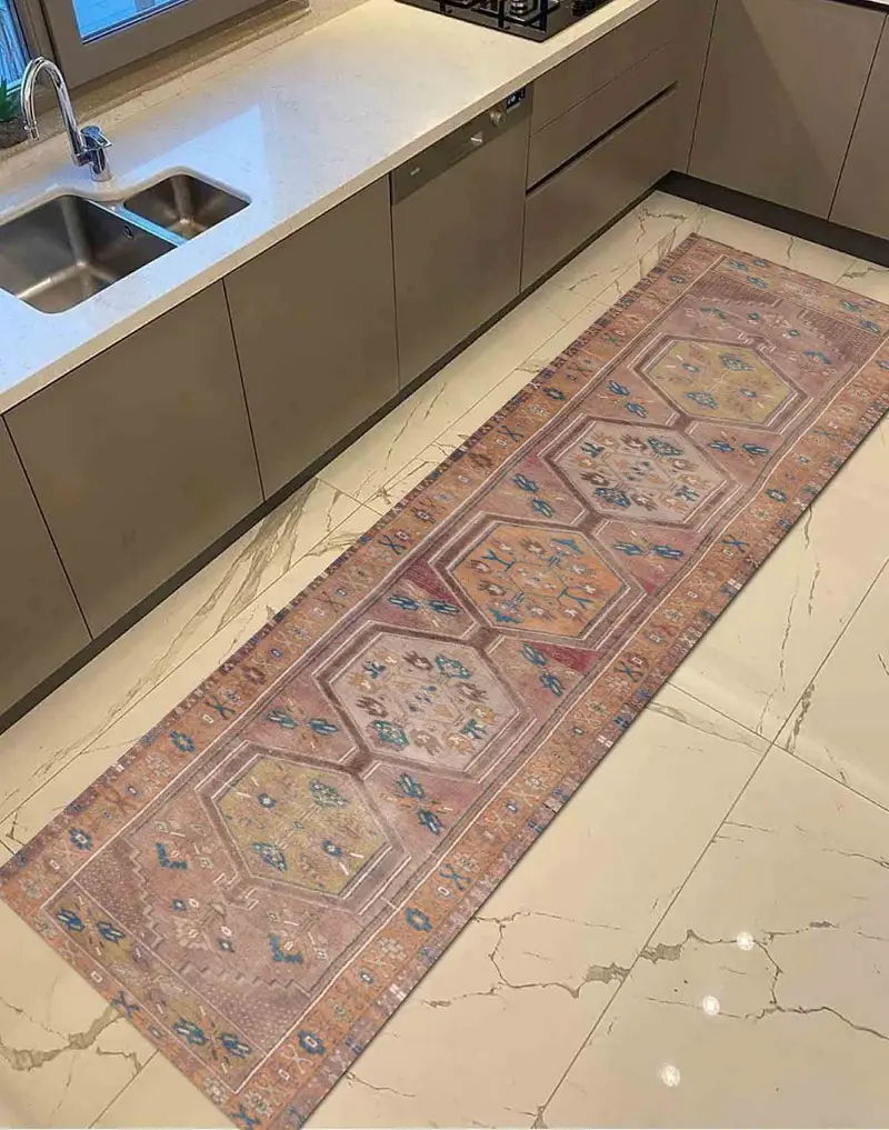 ブラウンとオレンジの幾何学模様のアステカ ナバホ プリント ラグ