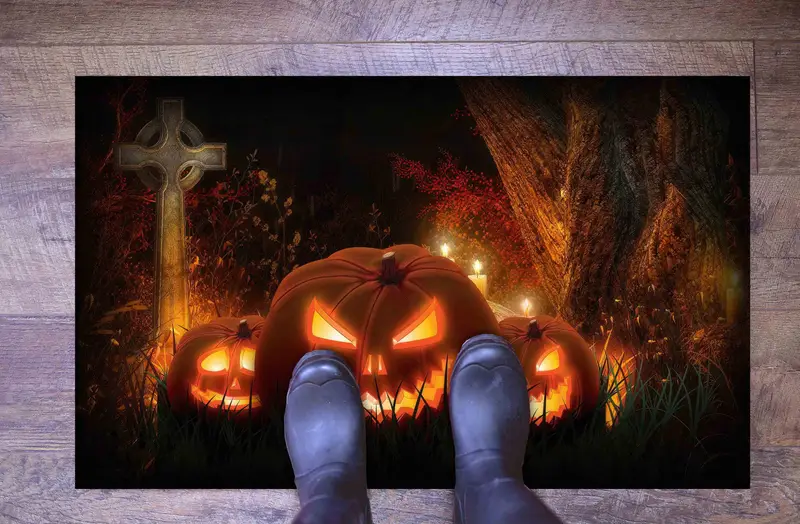 パンプキンプリントラグ: モダンなハロウィーンホラーデコレーション