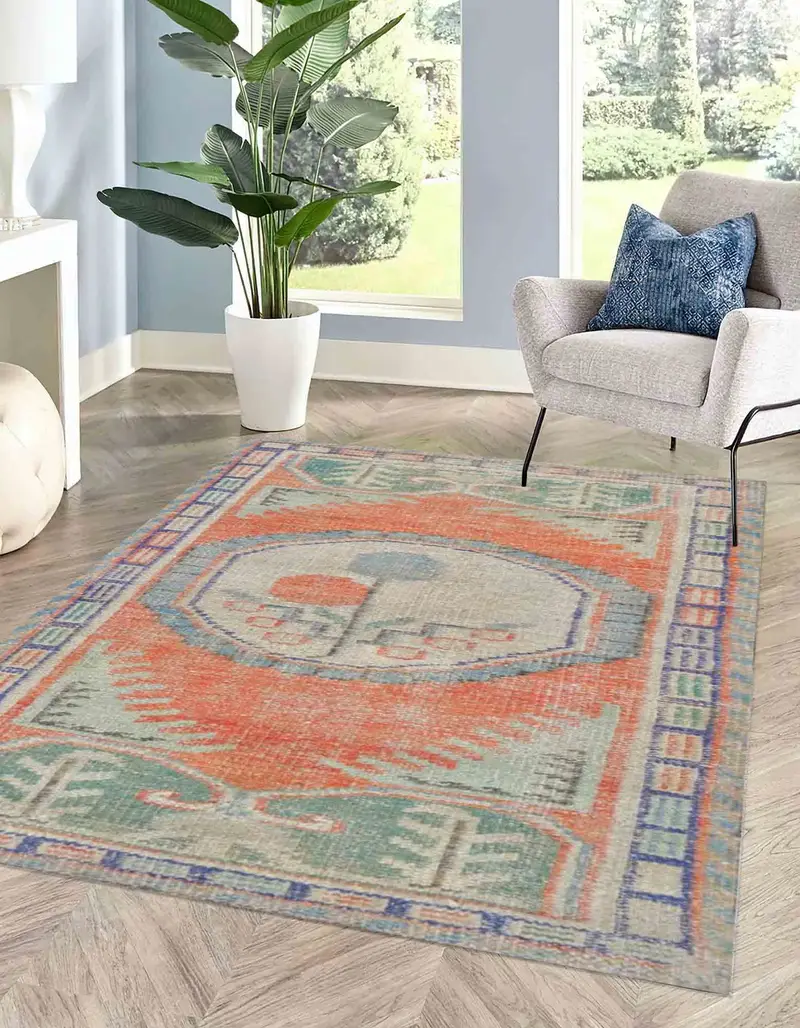 色あせた落ち着いた色のミニマリストボヘミアンヴィンテージプリントラグ