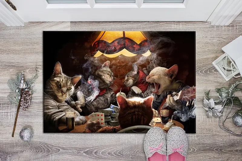 抽象的な猫ポーカー ゲーム プリント ラグ、モダンな動物デザイン