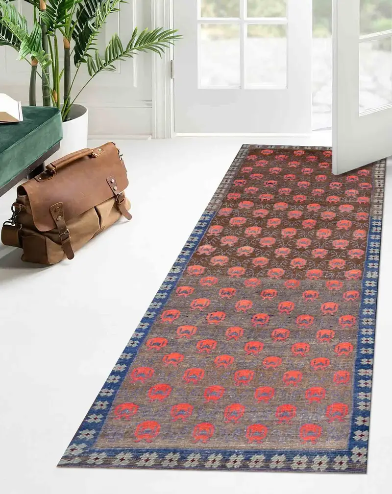 ザクロのヴィンテージプリントラグ:レッド、ブラウン、ブルーの色合い