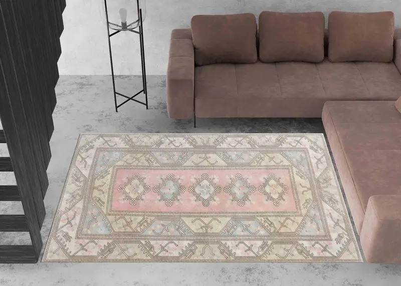 ソフトトーンのアンティーク花柄ヴィンテージプリントラグ