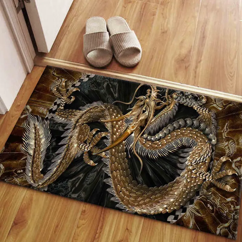 ドラゴン柄モダンプリントラグ:トレンディ、ユニーク、日本デザイン