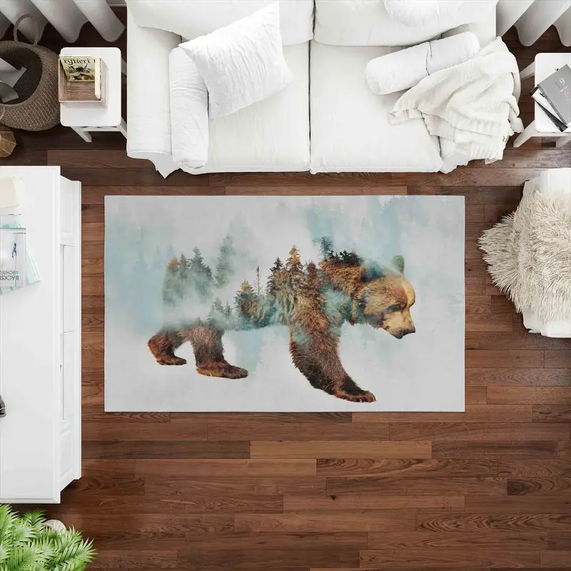 クマの抽象的な森のプリント ラグ: モダンな子供部屋の装飾