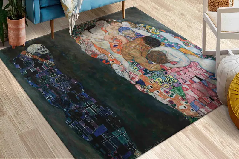グスタフ クリムトにインスピレーションを得たプリント ラグ: トレンディなミックス デザイン