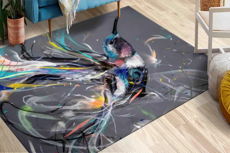 ハミングバード抽象的な鳥のプリントラグ:モダンで贅沢な家の装飾
