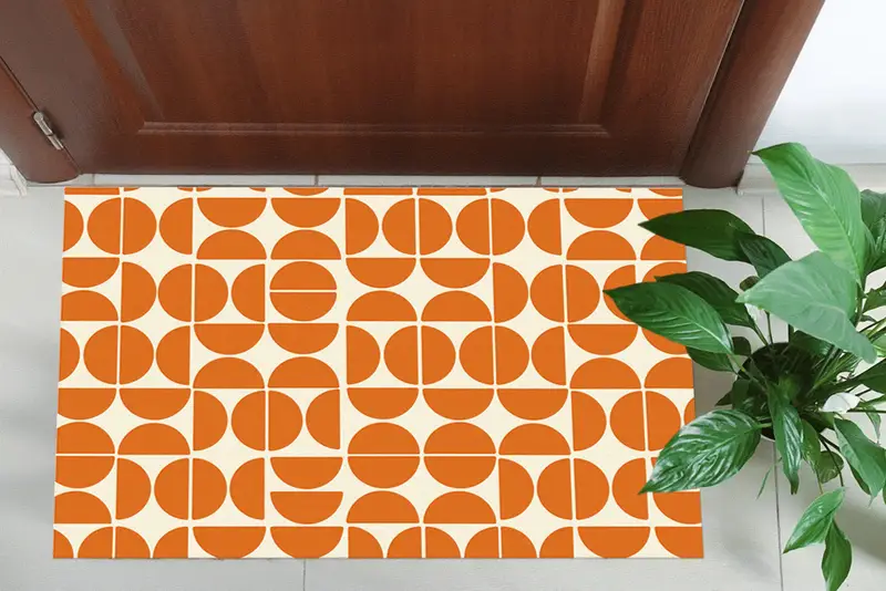 オレンジの幾何学模様プリントラグ、モダンなボヘミアンミニマルホームデコレーション