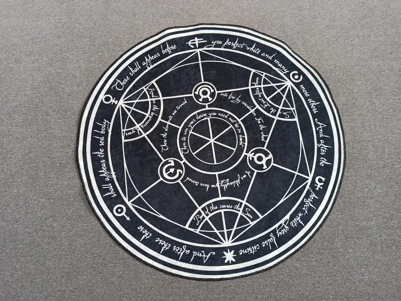 アルケミー サークル モダン プリント ラグ、鋼錬成にインスピレーションを得た
