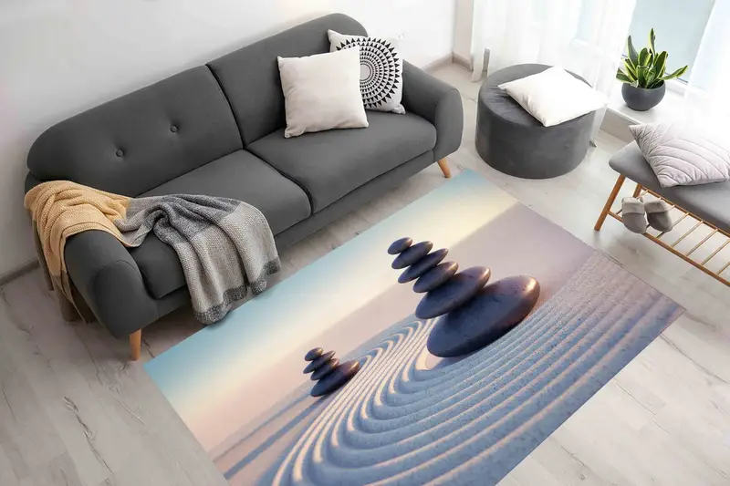 幾何学的な禅プリントのラグ: モダンでミニマルなオフィス装飾の必需品