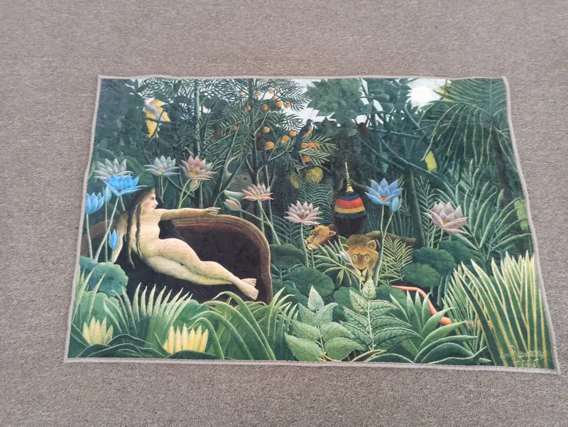 ボタニカル ブルーム プリント ラグ: 花柄と女性のミックス デザイン