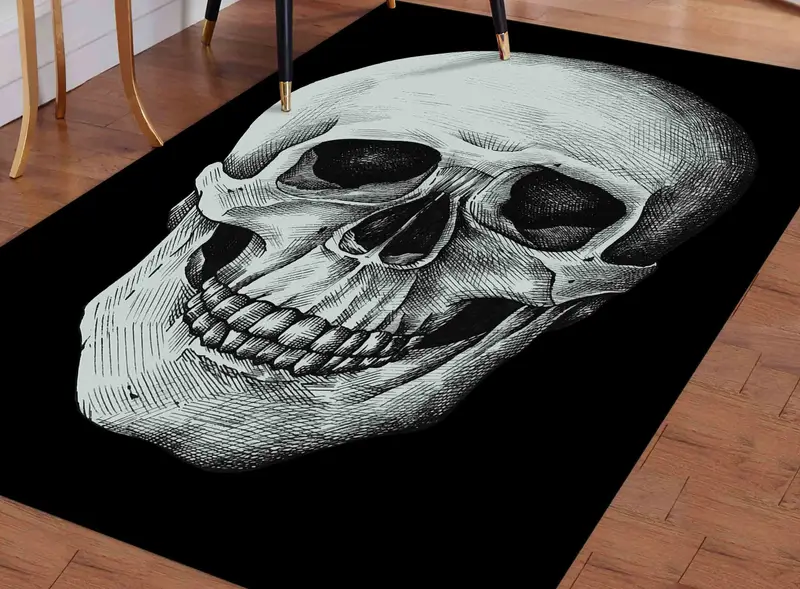 ブラックプリントラグ - 男の洞窟とロフト用のモダンホラーデザイン