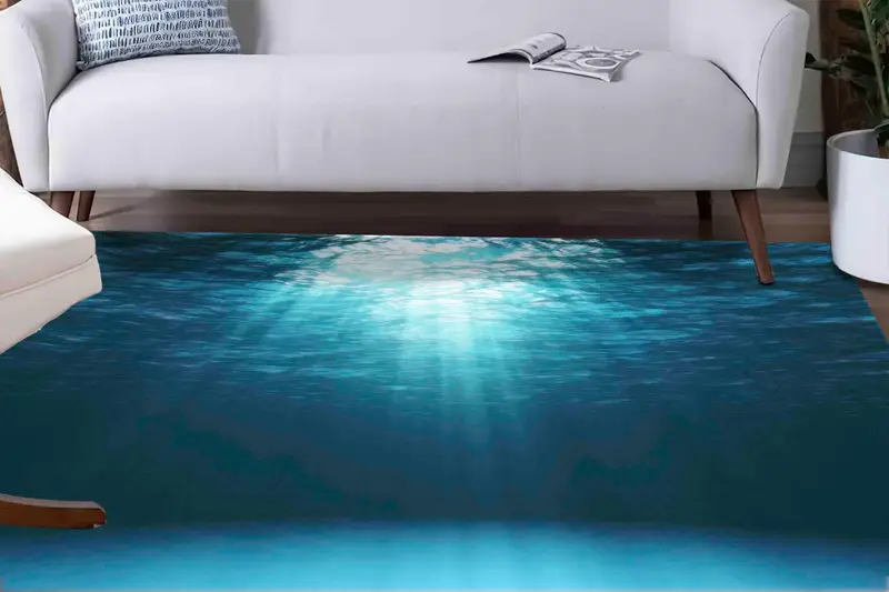 水中海岸プリント ラグ - トロピカル ブルー ランドスケープ デザイン