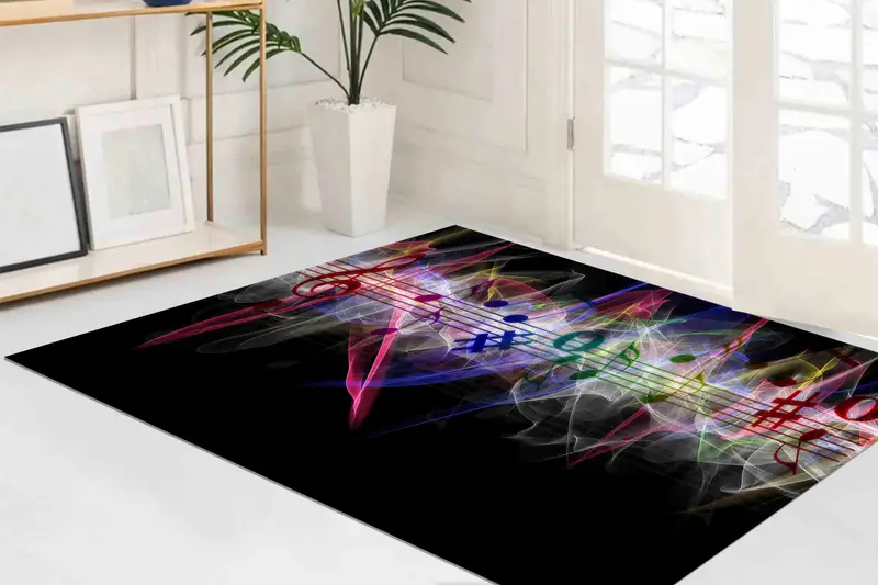 カラフルなプリントラグ: モダンな空間に適したトレンディなミックスデザイン