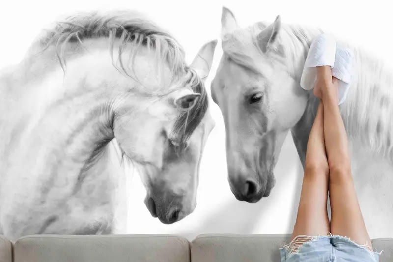 二頭の馬のプリントラグ: 現代のオフィスのための海...