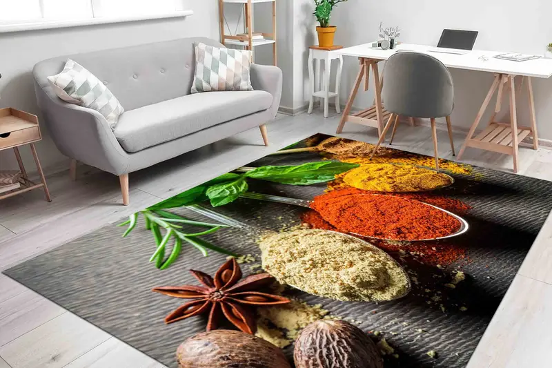 モダンなキッチンとダイニングルーム用のカラフルなインディアンスパイスプリントラグ