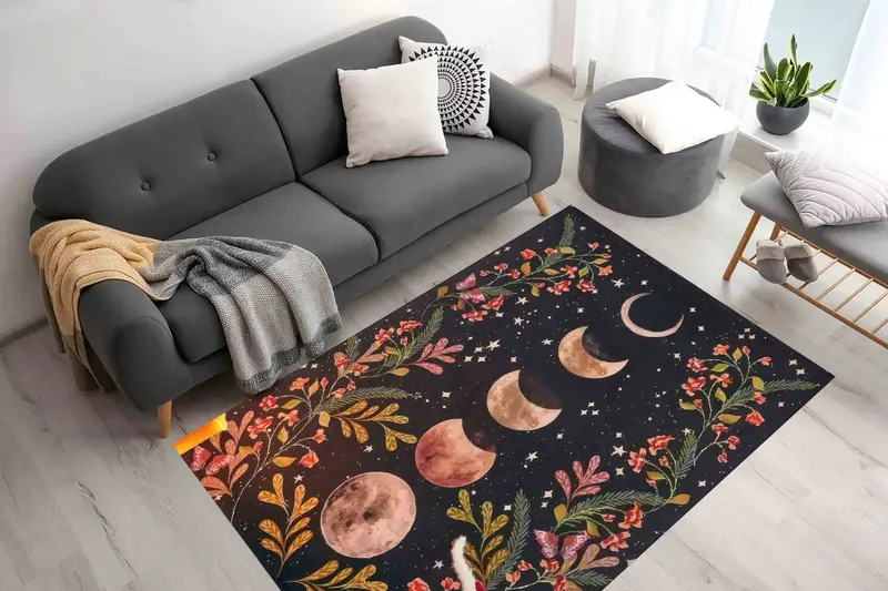 Boho Moon フローラル プリント ラグ: モダンなボヘミアン装飾の必需品