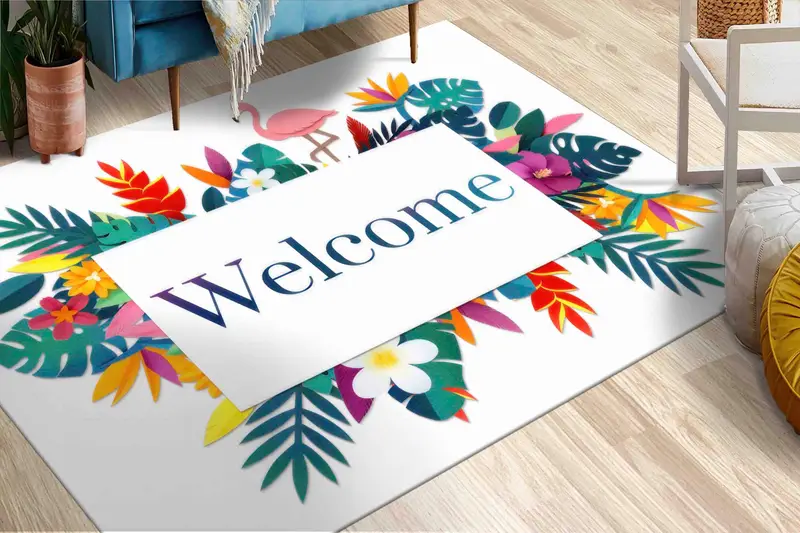 花柄ラグ: モダンなリビングのためのトロピカルサマーボタニカルデザイン