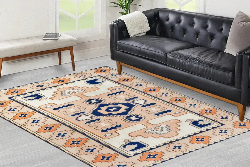 ネイビー ブルー ヴィンテージ アステカ キリム プリント ラグ: モダンな幾何学模様の装飾