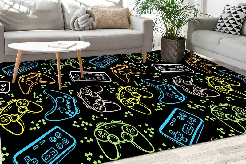 ネオンの色合いのプリントラグ - モダン、カラフル、トレンディな室内装飾