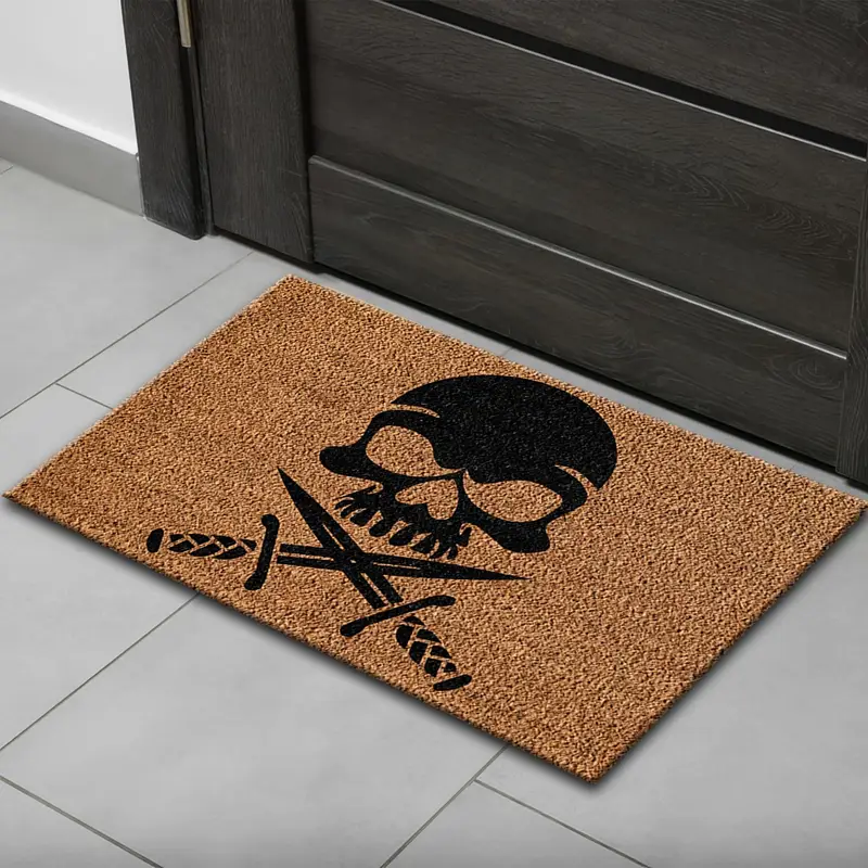 海賊スカルデザインコイアドアマット、玄関用プリントラグ